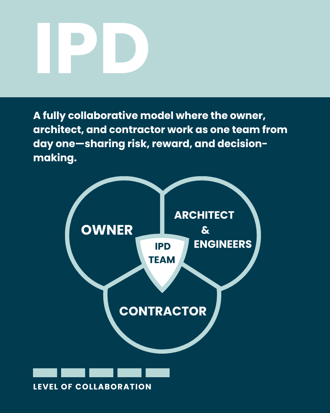 In IPD, collaboration isn’t a buzzword — it’s built into the contract.