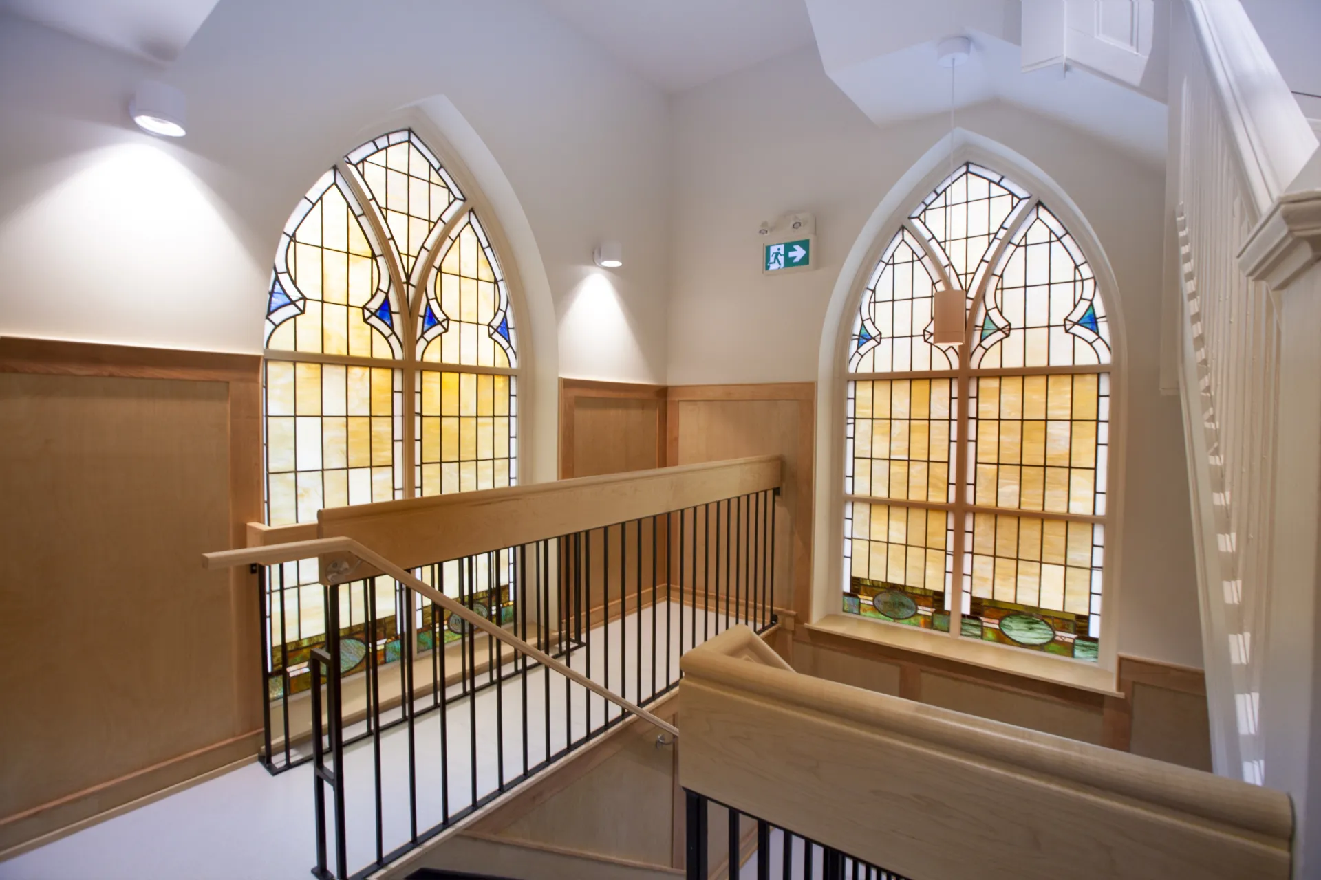 Comprehensive upgrades extend across the building, including redesigned kitchen facilities, fresh air systems, heating, washrooms, electrical infrastructure, and lighting. Exterior improvements strengthen the church’s role as a gathering place for worship, cultural events, and outreach.
