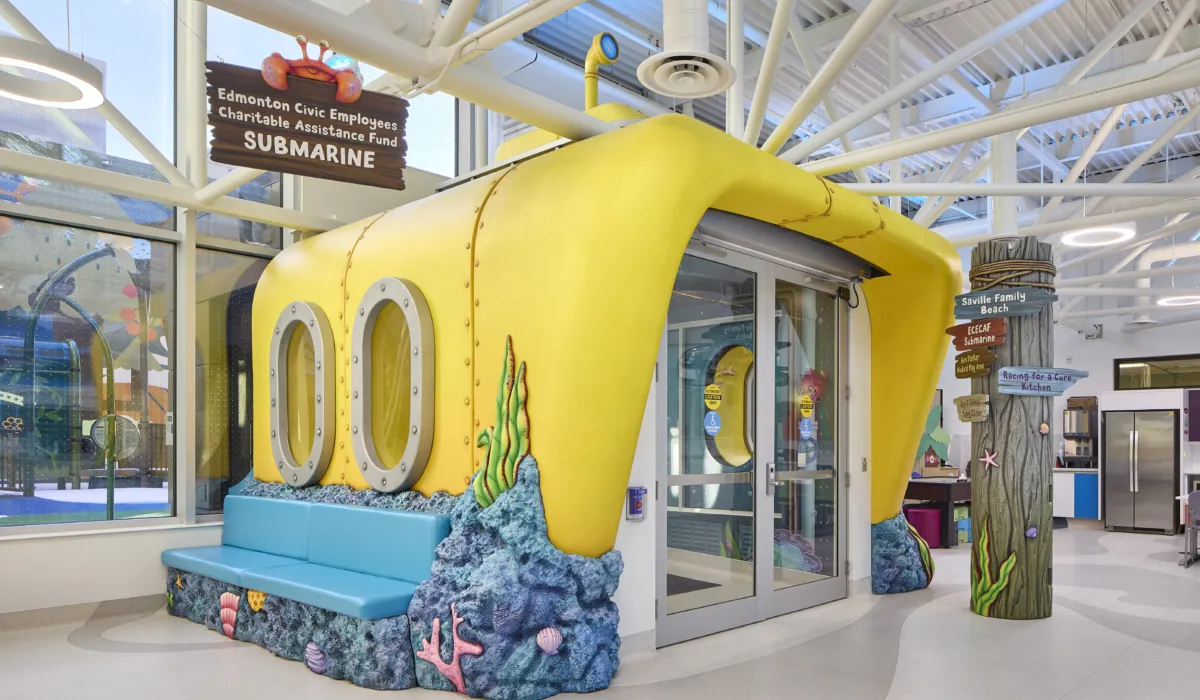 This space is thoughtfully designed to support a variety of therapy programs and activities for children of all ages, nurturing fun, healing, and social interaction. Every detail, from the custom entry to the playful, accessible features, was crafted to promote a welcoming and inclusive environment. The result is a space that uplifts, inspires, and supports the holistic needs of Stollery patients and their families.